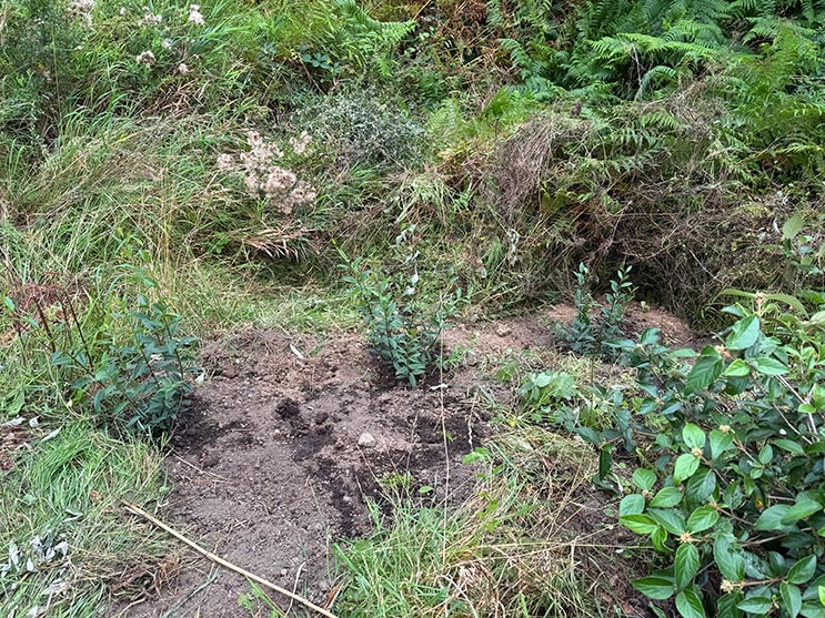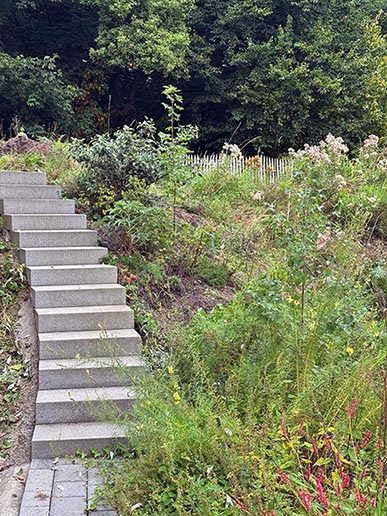 Zum Glück kamen in der Woche noch drei Liguster. Die konnten wir dann gleich an die frei gewordene Stellen neben der Treppe einsetzen.